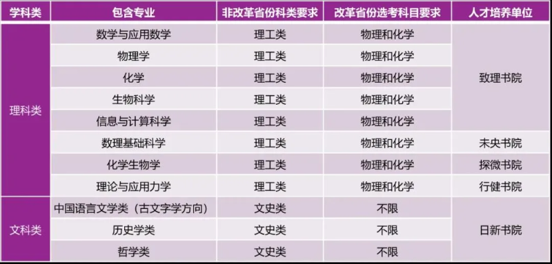 基礎理科工程銜接類專業(yè)包括:數(shù)理基礎科學、化學生物學、理論與應用力學,旨在選拔并培養(yǎng)在基礎理科領域有特長,且有志于從事高端芯片與軟件、智能科技、新材料、先進制造和國家安全等關鍵領域研究的學生?! ?/p>