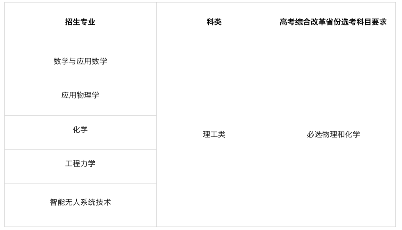 我校強基計劃招生專業(yè)及高考綜合改革省份選考科目要求如下: